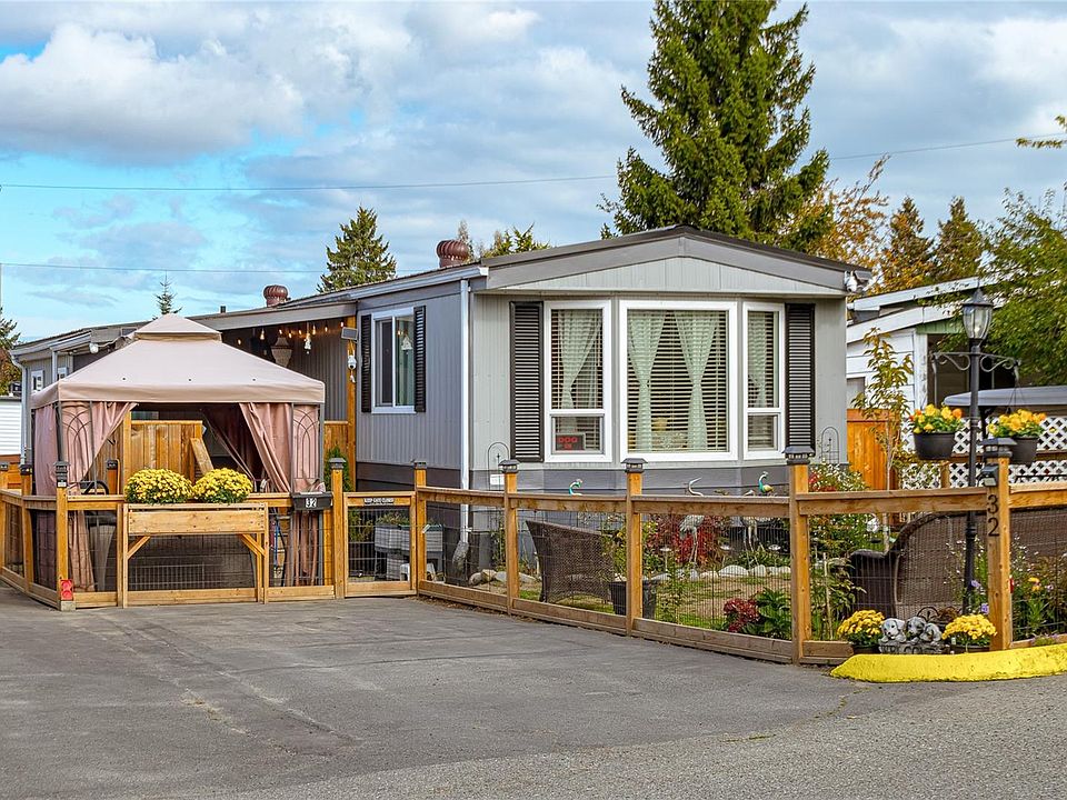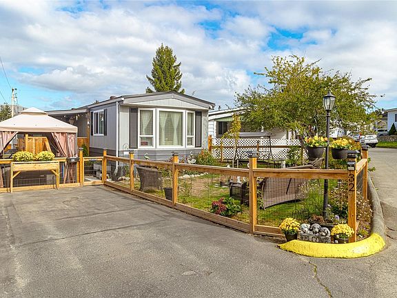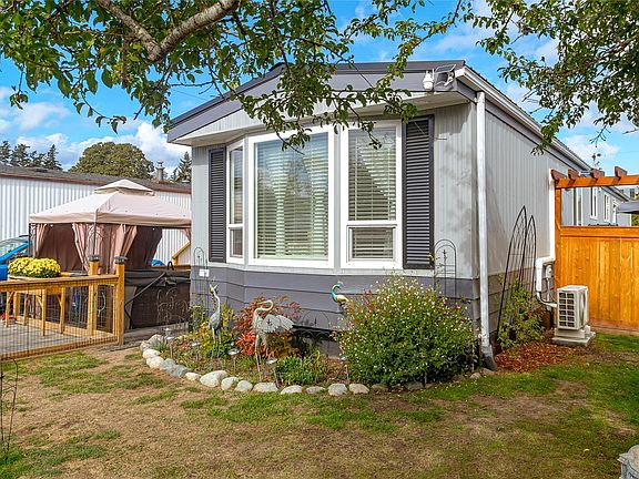 OPEN HOUSE SUNDAY OCTOBER 26 11-1! Welcome to this 2 bed/1 bth home with an addition that could be a 3rd bed or office/den! The home has been entirely painted (interior/exterior), new windows, blinds, and Lennox Heat Pumps (Living Rm and Bed Rm) with cooling/heating. The kitchen has a new fridge, stove, microwave, dishwasher, countertops, backsplash, and farmhouse sink, and the bathroom has new tops, sink, toilet, soaker tub and shower. Also new are the interior doors, baseboards, hardware, washer/dryer, and carpet in bedrooms. Outside has been professionally landscaped (with irrigation) and fully fenced with a private deck and metal roof (hot tub) and a new roof on the 13x12 wired outbuilding that would be perfect for a shop/studio. The location is ideal with ample parking on the newly sealed driveway, close to NADEN, across from Admirals Walk Shopping Centre with excellent amenities, and minutes away from the Gorge Waterway. All this in a well-run, PET FRIENDLY park w/ low pad fees!