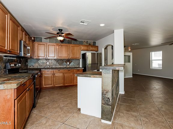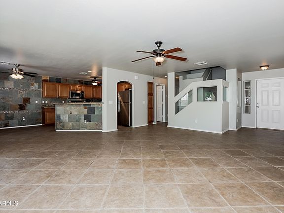 Experience space, style, and comfort in this beautiful 4-bedroom, 2-bath home located in a highly sought-after community. With 2,337 sq ft of living space on a generous 10,276 sq ft lot, this home offers the perfect blend of elegance and functionality. The open great room and loft provide versatile living areas, while the kitchen features custom countertops, an island, and a breakfast bar—ideal for entertaining. The primary suite upstairs includes a walk-in closet and full bath for added privacy. Step outside to your covered back patio overlooking a sparkling pool and spacious yard, perfect for relaxing or gatherings. Complete with a 2-car garage plus 2 additional slab parking spaces, and conveniently close to Johnson Ranch Golf Club, local shops, San Tan Mountain Regional Park, and more, this home offers the best of Arizona living!