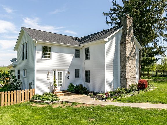 Your chance to own a true historical home on the Bluegrass Trust, The Hufford House was built in the 1790's. Situated on 1.14 acres surrounded by horse farms. Conveniently located 10 minutes to Georgetown, I-64, and Toyota.The tree lined drive leads you to this extensive two story home which has been loving cared for and maintained, with many upgrades and fresh paint. Entering the foyer you first notice the original wood floors-just imagine the stories they could tell. To the left is the large living room with it's wood burning buck stove. To the right is the Dining Room with the original exposed hand cut log walls and rafters and pot belly stove. Continue straight to the updated kitchen with granite counters and stainless appliances. Past he kitchen leads to the bright sunroom with stunning views of Kentucky horse farms. The stairs lead you to another foyer, two large bedrooms, and Master. There is also a barn with 2 car garage attached. Accepted offer with a contingency.