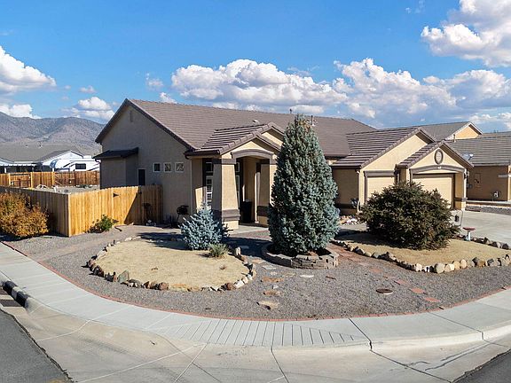 Welcome Home to this beautifully maintained and thoughtfully updated home offering you comfort, style, and flexibility throughout. With nearly 2,500 square feet, the spacious and well-designed floor plan provides open gathering spaces and private retreats — perfect for everyday living or entertaining. Inside, you'll find 4 generous bedrooms and 2 full baths. The remodeled primary bathroom is a standout, featuring a large, stunning tile shower and a custom vanity with elegant countertop sinks. Beautiful hardwood flooring extends from the entry through the formal living and dining rooms, into the great room, breakfast nook, and hallways, creating a seamless flow. Plush carpeting accents the great room and bedrooms, while custom tile enhances the kitchen, baths, and laundry areas. The kitchen has been tastefully updated with custom cabinetry, a large custom sink, quartz countertops, and newer stainless steel GE Profile appliances — including a 5-burner gas range — making it a dream for any home chef. The great room has a cozy gas fireplace. Ceiling fans in all bedrooms and the great room ensure comfort year-round. A whole house water softner/filter is also included. Outside, the stucco exterior and tile roof lend timeless appeal, while the low-maintenance landscaping with sprinklers and drip system keeps upkeep simple. Enjoy the convenience of RV access in the backyard, plus both covered and uncovered paver patio areas, a hot tub, and a paver walkway that enhance the outdoor living experience. Beautifully updated, impeccably maintained, and ready for its next chapter — this home is the perfect blend of elegance and functionality.