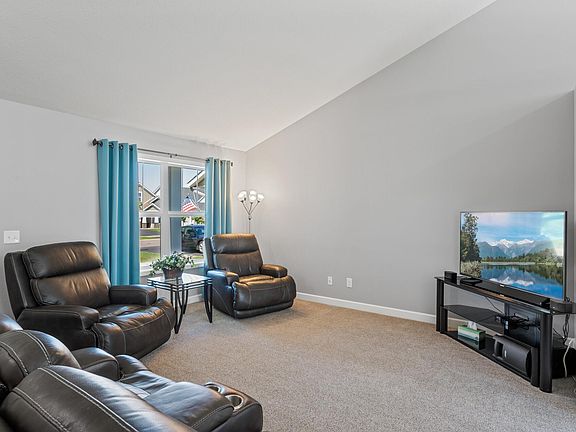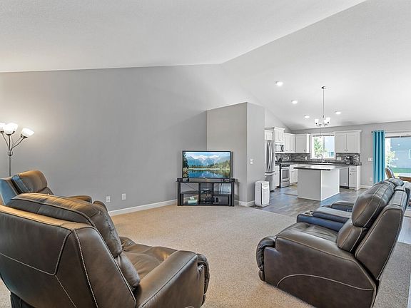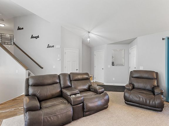 Pristine, only a relocation makes this home available. Located in the new Riverstone Community, this home offers 3-bedrooms on one level, 3-bathrooms & a 3-stall garage with a full width driveway. Upon entering the home from the mtce-free porch you will find a light & bright open floor plan. The main level features a vaulted ceiling, spacious living room, dining area and kitchen with ss appliances, center island, tile backsplash & walk-in pantry. From the dining area step out to the rear yard & concrete patio. The upper-level features 3-bedrooms & 2-full bathrooms. The primary bedroom suite is complete with a full bath & large walk-in closet. You will find the theatre/family room on the lower level along with the 4th-bedroom & 3rd-bathroom, plumbed for the addition of a shower, laundry, mechanical & large storage area. What a wonderful place to call home. Close to schools, parks, golf, dining, quick access to freeway & commuter rail. Easy to show, quick close.