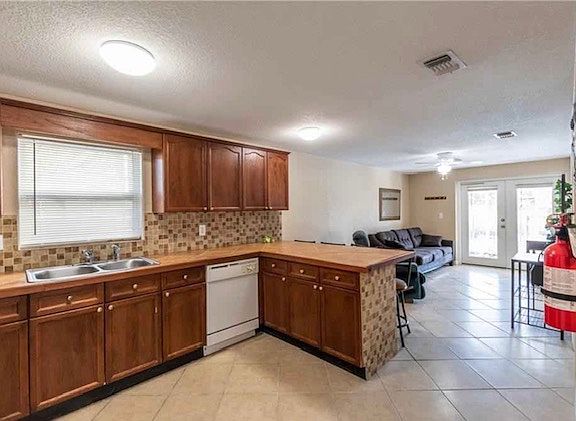 The home is furnished with 2 queen beds, living room furniture, breakfast bar stools, outdoor dining, and patio furniture. Furnishings can be removed if the renter does not need furnishings.
