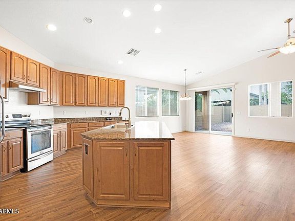 ***Stunning Family Home *** Recently upgraded single level home with new upgraded flooring, baseboards, kitchen island, interior and exterior paint and custom front door. This South/North facing home with high vaulted ceilings and plenty of windows offers ample natural light. Entertain your guests in the spacious open great room or the separate living room off the entrance. You'll enjoy the spacious master bedroom with a walk in closet, separated bathroom and wide vanity. This family-friendly community offers a playground with swings, basketball court, wide open fields, multiple greenbelts with walking and biking paths. Bring your family by and turn this house into a home Today!