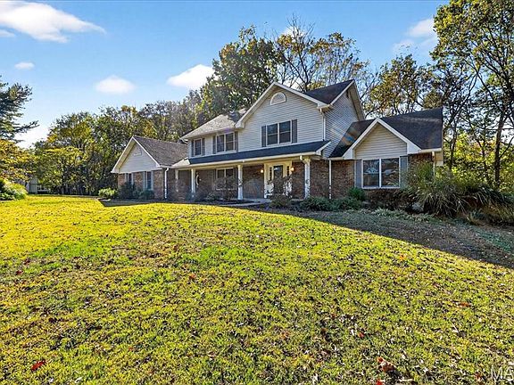 WELCOME HOME! Escape to your own private retreat on 3 beautiful acres in Florissant! You will feel like you're living in the country while still being minutes from all the conveniences of town. This beautifully updated home features a main-level primary suite with vaulted ceilings and en suite bath. Step into an entryway with hardwood floors flowing through the foyer, dining room, and throughout the newly finished upper level. The main floor also features an updated half bath and a breathtaking two-story Great Room with a dramatic vaulted ceiling, fireplace, and windows on both sides of fireplace offering peaceful views of your wooded, private backyard. The renovated eat-in kitchen will impress with center island, gorgeous granite countertops, and a convenient laundry room nearby, also featuring matching granite. Upstairs you'll find brand-new hardwood floors, an updated full bathroom, and a versatile bonus room perfect for a home office, playroom, or creative space. The finished walk-out lower level provides even more living space, ideal for entertaining, a recreation room, guest bedroom, or office. Additional peace of mind with a brand-new HVAC system, warranty included. Outdoor living shines here, relax, and enjoy the privacy and serenity of your own acreage. This special property offers the best of both worlds: seclusion, space, and nature, just minutes from shopping, dining, and major highways. WELCOME HOME!