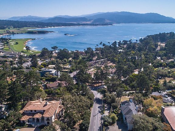 In the perfect location, only one block from The Lodge and ocean, is this charming 7 bedroom English Country Manor with views of the ocean and golf links emerging through the trees. Featuring single level living, with the master bedroom suite on the main level and open kitchen family room, this home has the ability to transform from a quiet retreat to a perfect gathering for family and guests with 2 bedrooms and 2 baths on the main level and 5 bedrooms with a second oversized family room upstairs. Experience the casual elegance of Pebble Beach living in this incomparable retreat.