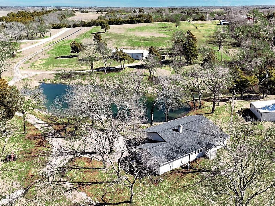 Want to escape the hustle and bustle of the outside world? Nestled on 25 acres of picturesque landscape, this charming 2 bedroom, 2 bath, 2 car garage, 1708 sq ft home is a blend of rustic allure and modern comfort. Enjoy your morning coffee or unwind after a long day on the wrap-around porch that overlooks the spring-fed, stocked pond with a dock, when you want to grab your pole. A spacious 60x50 metal, insulated shop with roll-up doors will fit your RV, boat or other equipment. Complete with water, electricity and a separate electrical meter, it is also plumbed for a future apartment. Ag exempt, mature pecan orchard, two pastures, 16x10 cattle barn, an additional small pond, free standing fireplace, and enough wooded natural habitat to keep your fireplace well stocked. Roof is less than 2 years old. With property listed under appraised value, this is your opportunity to own a slice of paradise.