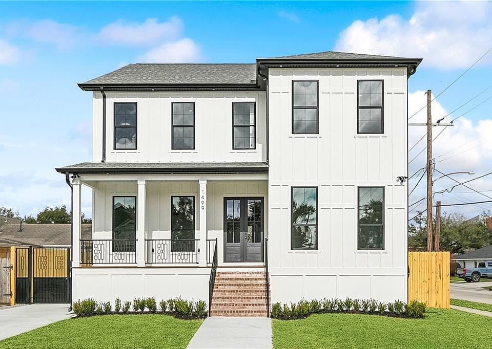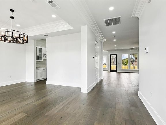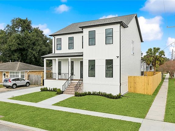 Recently completed & ready for new owner! Absolutely gorgeous new home features an open & spacious floor plan with large rooms, high ceilings, crown molding, stunning trim work, & tons of natural light throughout, contemporary fixtures/finishings, ample storage space, huge kitchen with new stainless steel appliances, high-end gourmet range oven, quartz counters, pantry with wine bar, & huge central island overlooking the living area, unique custom shelving with virtual fireplace mantel, downstairs bedroom with ensuite bathroom, upstairs laundry, & a massive primary suite with a beautiful spa-like bathroom featuring a luxurious soaking tub and dual shower as well as a large walk-in closet. Deep corner lot with plenty of curb appeal, rear yard vehicle access, spacious covered patio overlooking the big back yard with ample landscaping opportunities in a quiet neighborhood with quick access to countless surrounding amenities such as City Park, Lake Pontchartrain/lakefront recreation areas, & several schools including UNO.