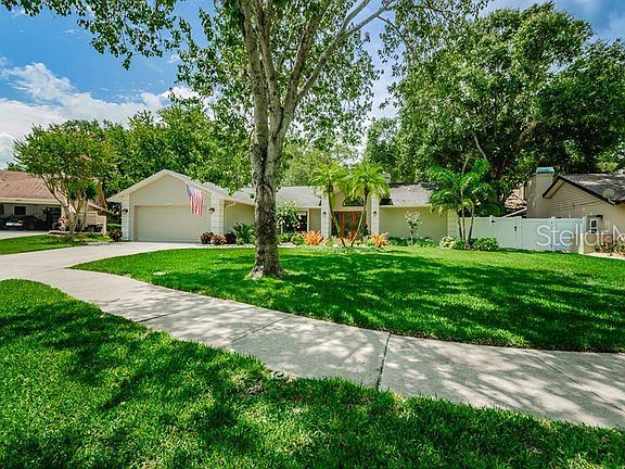 BEAUTIFUL HOME in Country Woods subdivision in Palm Harbor! Prime location - just MINUTES TO HONEYMOON ISLAND AND CALADESI ISLAND plus the nearby Pinellas Trail! Wonderful Mark Maconi custom home on an oversized lot with an open floor plan. This home features lots of updates beginning with an exquisite hurricane rated front entry of custom beveled glass doors, freshly painted interior and exterior paint from 2016, added recess lighting throughout, all electrical outlets and switches replaced, newer water softener and hybrid water heater from 2014. Featuring a split plan with 3 bedrooms and 2 baths with new baseboards, bedroom doors, closet doors and hardware. Living room has cathedral ceiling, a brick accented wood burning fireplace and sliding glass doors to the lanai. An UPDATED KITCHEN includes high-end KitchenAid appliances (fridge, dishwasher, stove and microwave), reverse Osmosis system, newer tile backsplash and granite counters/breakfast bar, pantry storage & gorgeous new vinyl flooring that extends throughout the house. BARN DOOR leading into UPDATED MASTER BATH with a neutral tile shower enclosed in glass and double vanity with granite counter. Secondary bedrooms share an UPDATED BATH with access to the back yard. Enclosed lanai overlooking large backyard with newer landscaping, pavers, vinyl fencing and custom firepit from 2014 ...plenty of room for a playground & room for all the family & pets (or a pool)!