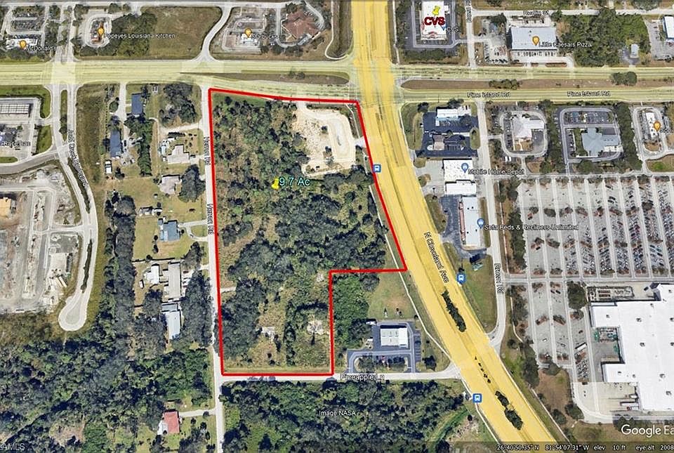 PINE ISLAND ROAD CPD - 9.71 acres at SW corner of N Cleveland Avenue (US 41) and NE Pine Island Rd (SR 78). CPD is approved for up to 121,800 SF of various commercial uses including 5,000 SF fast food restaurant, 4,000 SF car wash (planned 120' express tunnel with 25 vacs), 7,800 SF commercial retail uses, 2,500 SF auto repair services and 100,000 SF mini-storage or public warehouse. Max height of 45 feet. Multiple points of ingress and egress. Former location of c-store with fuel pumps and auto repair business. Utilities are available but not currently on site. All information deemed reliable and should be confirmed during due diligence/inspection period.