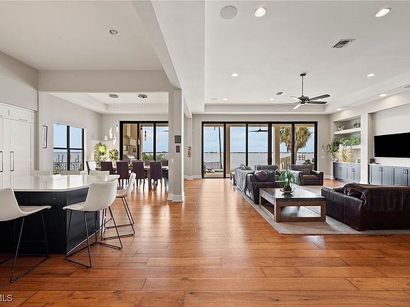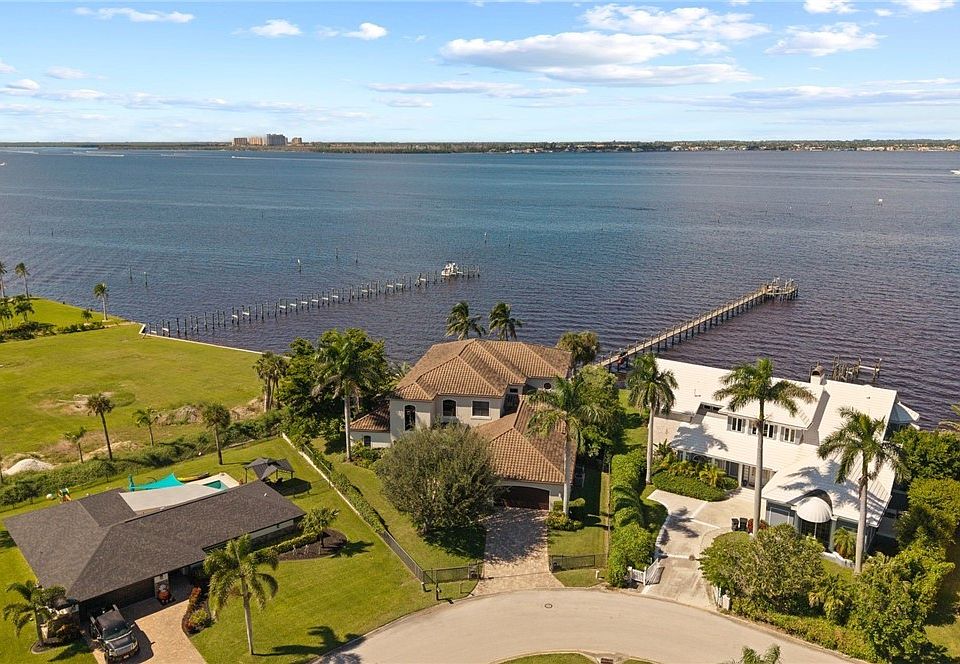 LUXURY RIVERFRONT LIVING. Custom Carlton-Naumann 6,394 Sq. ft. masterpiece, where a rare opportunity with unobstructed water views awaits you. Expansive pool and new 320-foot dock, Boat lift and space to fit multiple boats, perfectly positioned on the CALOOSAHATCHEE RIVER. 6 bedrooms and 6 Bathrooms & pool access. Every inch custom designed to showcase panoramic water views and sophisticated coastal elegance. Step inside to soaring ceilings and seamless indoor-outdoor living spaces that frame the stunning River backdrop. Open-concept great room flows effortlessly into a Quartz & Granite kitchen, featuring top-of-the-line appliances, custom cabinetry and a grand island ideal for entertaining. Underground propane tank services kitchen cooktop, Pool heat, outdoor kitchen and Fireplace. Equipped for whole house generator. Impact glass throughout. Retreat to a lavish suite, featuring a private terrace overlooking the river, spa-inspired bath and grand walk-in closet. Multiple guest suites offer privacy and comfort for family, friends and guests. Outside you will enjoy the ultimate Southwest Florida lifestyle with a resort-style pool, expansive covered lanai, outdoor kitchen and private dock, perfect for boating, fishing, water sports and sunset cruises. Located just minutes from the vibrant Downtown Fort Myers River District, fine dining, shopping and beaches, this gorgeous property blends tranquility with convenience. From sunrise to sunset and evenings by the pool, this is more than a Home. It is Paradise...on the RIVER.