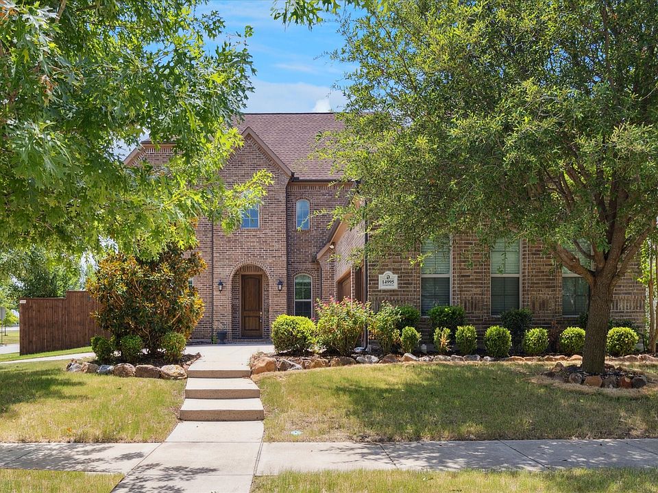 Welcome to this stunning luxury residence situated on a large corner lot in the prestigious Stonelake Estates of Frisco. This beautifully maintained home offers the perfect blend of style, comfort, and functionality, a must-see! Home offers 4 spacious bedrooms - primary and guest on main floor and two secondary bedrooms on second floor, 3.5 baths, a private study, a formal dining room, game room and media room. The home welcomes you with timeless elegance. The soaring two-story ceilings in the family room allow for abundant natural light, highlighting the rich hand-scraped hardwood floors throughout the main floor. The chef’s gourmet kitchen is a dream come true, featuring a large center island, rows of cabinetry, and stainless steel appliances, ideal for entertaining or everyday living. The open-concept layout flows seamlessly into the grand living room, perfect for gathering with family and friends. The main level includes a luxurious primary suite with a spa-inspired bath, a generous guest suite, and a private study offering the convenience for key spaces. Upstairs, enjoy a fully equipped media room, a spacious game room with a newly added wet bar, a half bath and two large secondary bedrooms with walk-in closets. Step outside to a beautifully landscaped backyard oasis, the perfect space to relax, entertain, or garden. Whether you're hosting or unwinding, the outdoor area is a private retreat. Located just minutes from top-rated Frisco ISD schools, shopping, dining, and major thoroughfares, this home truly has it all. Don’t miss your chance to own this exceptional property in one of Frisco’s most sought-after communities.