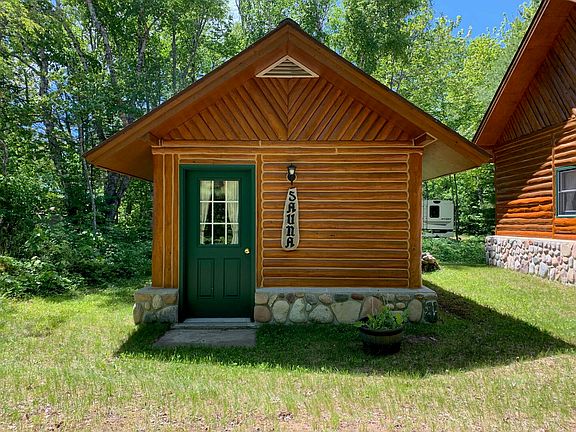 This Michigan White Cedar Home embodies the Spirit of the North. Beautifully constructed with full white cedar logs, real stone masonry, vaulted beamed ceilings and decorated in tasteful, whimsical style. Situated on 200 feet of wide sand beach ensures glorious sunrises, Canadian shoreline vistas, and views of passing freighters. Living, Dining and Kitchen are located Bay side providing panoramic views. Bedroom, Full Bath and Laundry/Entry complete the main floor. Upstairs is a large loft with ample sleeping and lounging area. A large waterfront deck completes the house. Additionally, there is a charming, log and stone sauna and hot tub building as well as a 24X28 cedar log garage. All Appliances and most furnishings and decor are included. Exceptions provided by separate list.
