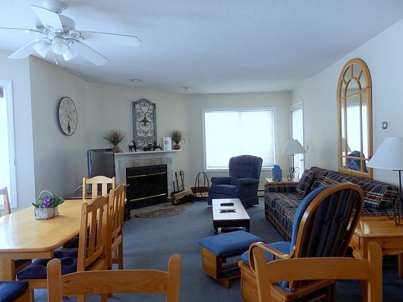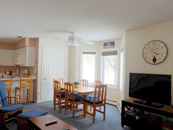 WALK TO THE SUNDANCE BASE LODGE OF MOUNT SNOW from this 3 bedroom 2 bath condominium on the first level. Open your slider and you can enjoy a nice view of the river from your patio. Wood burning fireplace and a new heating system. With this layout, you can enjoy your stay entertaining family and friends. Now is the time to own where you play!