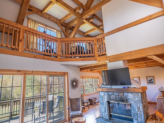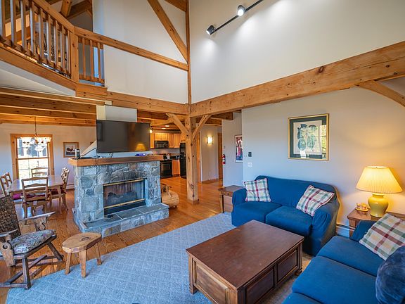 Stunning Post and Beam style townhome overlooking spectacular views of Mount Snow and Haystack ski trails with the sunsets in the west beyond. This private end unit features an amenity rich location thanks to direct VAST snowmobile trail access, hiking and biking trails in the summer, as well as easy access to the Mount Snow golf course which is directly through the adjacent woods, and nearby convenience to the Mount Snow ski resorts, and local towns for dining and shopping. The natural woodwork abounds in this true Vermont getaway thanks to the exposed post and beam construction. Inside you are treated to a spacious great room with vaulted ceilings and windows open to the views and sunny exposure, an open concept floor plan with stone double sided wood burning fireplace, a large dining room, kitchen with granite counters, stainless appliances, and breakfast bar, great separation of living space thanks to bedrooms and baths on each of 3 levels, as well as a large family room in the basement great for entertaining while others may be sleeping upstairs. There is also a large loft ideal for overflow sleeping or play space, a sizeable mudroom with ski locker, and plenty of parking space. A rare opportunity in a great location.