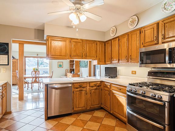 This home is bright, cheerful and elegant with is shiny floors and Sky lights with auto closing blinds. The gas fireplace offers warmth to the atmosphere of the home. There is a first-floor bedroom for convenience. The dining area exits to a beautiful perennial garden that is fenced and has a patio with paver bricks and a deck. The lower level offers a family room, an office and a large storage area. There is a 2-car garage which is heated. The acre yard has an apple tree and other mature trees plus a nice sized garden area. Across the street is Burnidge Forest Preserve for you to enjoy.