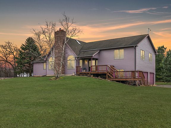 Equestrian Paradise on Nearly 18 Acres! This stunning 3-bedroom, 2.5-bath home sits on nearly 18 acres and is a dream property for horse enthusiasts. Featuring a 22-stalls ( rubber matted )-, a 60' x 120' indoor arena, an outdoor arena, separate electric to all stalls, numerous pastures and run-outs, and perimeter riding along the owners fence line. This estate offers everything needed for top-tier equestrian living. Additional features of the main barn include a tack room, heated office, bathroom and heated gathering area. Attached to the barn is extra storage for equipment and farm tools. A small separate hay barn and a storage container that can be used for shavings. An additional 40'x70' outbuilding included. The charming house with modern comforts features a main-floor primary suite with an ensuite bath, complete with a jacuzzi tub. A spacious living room with a wood-burning fireplace flows into the open-concept kitchen and dining area. The main floor also includes a half bath, laundry room, and access to the oversized 2.5-car garage with double doors. Enjoy breathtaking views from the enclosed porch, overlooking the back pastures and riding trails. A separate deck with a hot tub provides the perfect spot for relaxation. Upstairs, you'll find two additional bedrooms and a full bath. The unfinished walkout basement is a blank slate, ready for your custom design, with roughed-in plumbing and slider doors leading to a patio-ideal for family gatherings. Nestled in a serene yet convenient location, this property is close to downtown Sycamore, Genoa, Elburn, Geneva, and St. Charles, offering easy access to shopping, dining, and major amenities. Don't miss this rare opportunity to own a breathtaking horse property with endless potential.