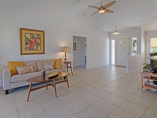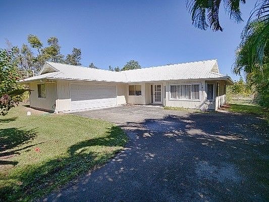 Homes in the sunbelt of Hawaiian Paradise Park are rare to come by. This beautiful 3BR/2.5BA home has privacy and is a short walk to the coastline. Enjoy the peaceful setting outside on your lanai. The tropical landscaping adds to its curb appeal!Do you love to entertain? You'll love the open floor plan. The kitchen is the center of all activity and you can converse easily with guests who sit in one of two dining areas, or in the living room. Tall ceilings help to keep the home cool in the summers. Trade winds flow easily throughout. Solid surface counter tops are featured in the home. The master bedroom is situated on one side of this home, while the other two bedrooms are on the opposite side. Gardeners will enjoy the sweet areas in the backyard, and you might find the old horse shed useful for all of your garden accoutrements.. You'll be adding this home to your short list!