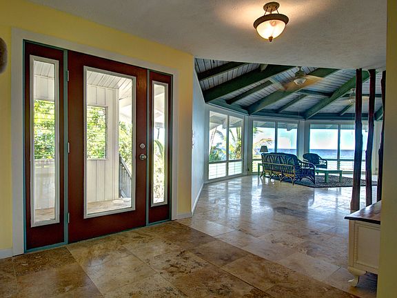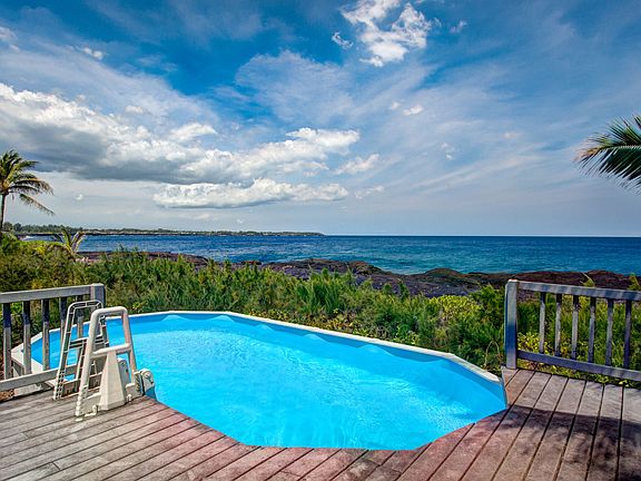 An Amazing Oceanfront Property and a fantastic opportunity that rarely comes on the market. The home was built to last in 1974, along with some of the earliest homes along this coast line. It's a classic beauty with 3183 square feet of livable area, 681 square feet of covered, enclosed and partially enclosed exterior lanai space, a free standing oceanfront pool with two levels of sun decking, a 3 car garage, and a beautifully landscaped 2/3 of an acre with rock wall accents and a circular driveway. The graceful staircase entrance to the home has custom mosaic tiled walkways, trex deck stairs and tiered fountain. Entering the home, the main upstairs Great Room is designed to focus on the main event, the crashing ocean waves! The room is graced by large glass windows looking right out to the ocean and the Kaloli Point coastline. The polygon shape continues and includes a covered, partially enclosed exterior ocean view deck with access from the living area and kitchen to a second staircase leading to the sundeck below. Also upstairs are three generous bedrooms, two baths, laundry room and another covered enclosed lanai off the bedrooms for sitting, reading, or just hearing the crashing waves. The downstairs bonus studio area is completely self contained. It includes a large sitting area with ocean views, one bedroom, bath and laundry area, kitchenette and enclosed covered lanai leading to the sundeck. With a little TLC, it will be yours to enjoy however you want - extended family, vacation rental, work studio. Endless possibilities!Seller has priced this home to sell! This is your opportunity to own a fabulous oceanfront home.