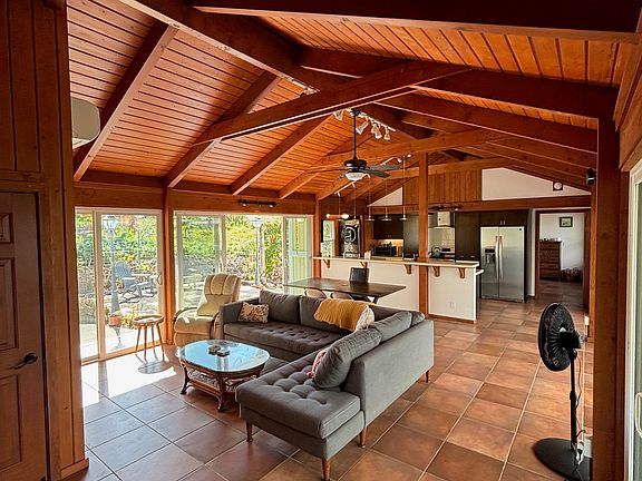 Escape to this one-of-a-kind custom home in the heart of the Hawaiian Shores neighborhood. This stunning residence captivates with breathtaking ocean views from every room, where the sound of the waves will lull you to sleep. Exquisite attention to detail is showcased from the gorgeous vaulted ceilings to the elegant lampposts that illuminate the stone pathway as it winds around the home. This two-bedroom, two-bath retreat includes a separate Ohana that looks and feels like a treehouse Robinson Crusoe would have been proud of. The modern kitchen blends style and functionality, and the home is offered fully furnished, including most garage tools. Tradewinds provide the perfect breeze to keep the home cool and although there is AC in every room it was rarely needed. Solar panels on the roof that are paid for make electricity a nominal cost. As part of Hawaiian Shores Association, residents enjoy exclusive access to a community pool, scenic parks, and lively weekly community events, fostering a true sense of island connection. Embrace the ultimate Puna coast lifestyle in this coastal gem! All comments, data is provided by seller or seller's representatives. Buyer to confirm all & hold all parties harmless from any discrepancy data in the mls and advertising. Limited Service–Data Entry Addendum signed by seller/s must be signed by buyer/s with Purchase Contract.