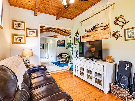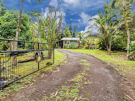 Located on Manako Ave in Hawaiian Paradise Park (on a dead end road) is a property that will charm your socks off! Manako, Hawaiian for mango...symbolizing strength and reverence. This quintessential Hawaiian home is anchored by a huge mango tree in the front yard. This magical property has a unique floor plan consisting of 3 bedrooms, 2 bathrooms and a spacious loft space and sits on an expansive lot of one well-manicured acre. The back gazebo area with fire pit offers views of the lush tropical landscape and swaying palm trees. Privacy is provided by a fully-fenced property with remote gate entry.