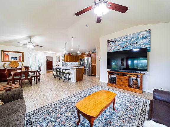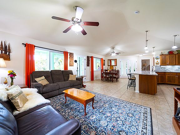 Located in Hawaiian Paradise Park in Keaau, Hawaii, this 3-bedroom, 2-bath home offers comfortable island living on a beautifully landscaped 1-acre property surrounded by tropical plants and fruit trees. Enjoy harvesting from your own orchard, which includes 2 longan, lychee, jackfruit, 2 tangerine, orange, mangosteen, lime, and calamondin trees.<br><br>With over 1,400 square feet of interior living space and more than 900 square feet of covered lanais, this home provides an ideal blend of indoor comfort and outdoor enjoyment. The main living area features an open floor plan with vaulted ceilings and ceramic tile flooring, creating a bright and airy atmosphere. The kitchen, updated in 2022, showcases quartz countertops and modern appliances upgraded over the past four years.<br><br>All three bedrooms feature beautiful bamboo flooring installed in 2020, each with direct access to the expansive back lanai—perfect for enjoying morning coffee or the evening breeze. Two ample-sized bedrooms and a full bath are located on one side of the home, while the spacious primary suite offers a walk-in closet and an en-suite bathroom complete with a walk-in shower and jetted tub.<br><br>A large detached garage provides additional storage and workspace. This well-cared-for property combines modern updates, generous living space, and a lush tropical setting, making it a wonderful place to call home in Hawaiian Paradise Park.<br><br>Property video: https://realestatevideos.vids.io/videos/5a9bd9bf1610e3c4d0/15-1379-20th-ave