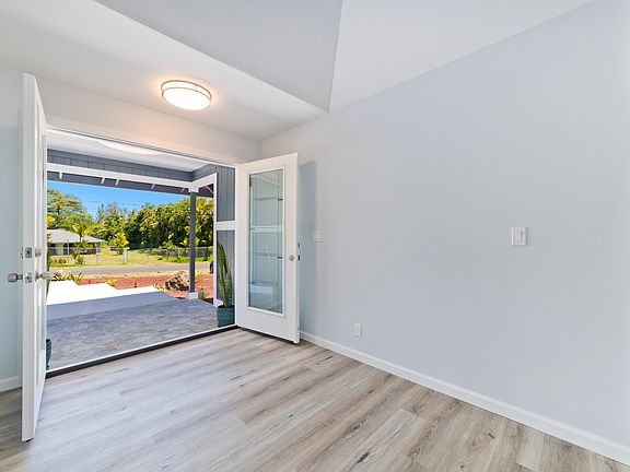 Experience the ultimate island lifestyle with this stunning new single-family home in Hawaiian Paradise Park. Nestled on a generous 1-acre lot, this property features three spacious bedrooms, including a luxurious primary suite with a walk-in closet and dual-vanity ensuite. The gourmet kitchen boasts premium appliances and a quartz island, perfect for culinary adventures. Enjoy vaulted ceilings, an open-concept living area, and an enclosed garage with a second entrance. The stone-tiled entryway, expansive lanai, and tropical landscape walkway complete this ideal retreat, conveniently located and just minutes to shopping centers, eateries, and Hilo International airport. One or more photos have been enhanced.