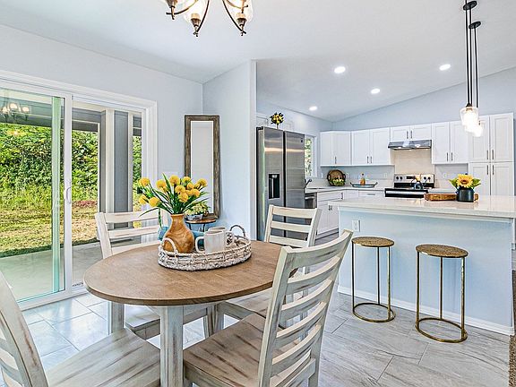 A spacious kitchen with a bar-top island overlooks the living and dining area, which leads out to a large covered patio perfect for entertaining or relaxing after a long day.