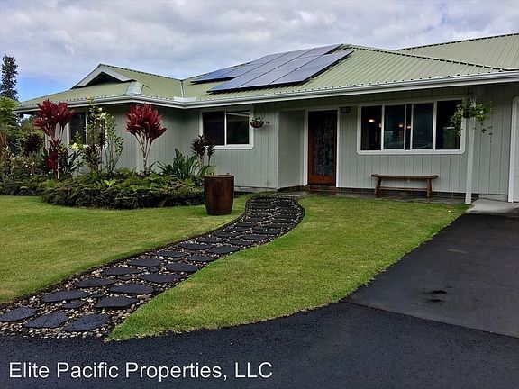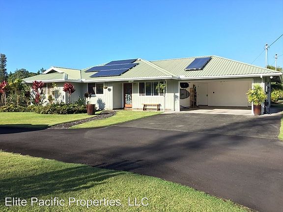 Must See Custom 3 Bedroom 2 Bath Solar Home with PV and Well - Will Go Fast - A haven located in the sun belt of Hawaiian Paradise Park! The home is welcoming and like brand new. The grounds are artistically landscaped. All combine to form a true masterpiece. Property is fully-fenced with two automatic solar powered aluminum gates that open to a wrap-around driveway. A stone pathway leads you to a slate tiled lanai and custom glass-etched door. Walk into a living room with a vaulted ceiling, cooled with a split- unit AC. Each bedroom is decorated around a theme: Asian, Bali and Hawaiian with each room having a view of the beautiful grounds. The main bathroom has a relaxing ocean theme. Lots of storage in the bedrooms, hallway and even laundry room. Owners planned this property as their "forever" home and it shows. The kitchen has spacious hardwood cabinets with stainless appliances and granite tile countertops. Upgraded laminated floorings flow throughout the home. Outside the grounds have been beautifully planned. Many unique areas! The pavilion is located in the heart of the property making it the perfect gathering space! Mauna Kea views! Two ponds, one at the front, the other in a lava garden. Small storage home in the back with cute deck and planter box! Tropical plants galore including varieties of heliconia, plumeria, anthurium, pineapple, Buddha Belly bamboo, palms and citrus. Each plant chosen with specific purpose. Irrigation systems are installed in the garden beds. There is even a WELL, so you have your own source of water! Eleven solar panels have been pre-paid for and on a lease-back program. The solar water heater provides lots of hot water year round. Move right in and enjoy a perfect Hawaiian home. **ACCEPTING APPLICATIONS NOW** RENT ~ $1,650 + GE Tax (Landscape Included) Schedule your showing TODAY Alan Rudo, RS-81400 Call/Text (808) 990-1688 Elite Pacific Properties,LLC www.EPMHI.com No Pets Allowed (RLNE4746511)