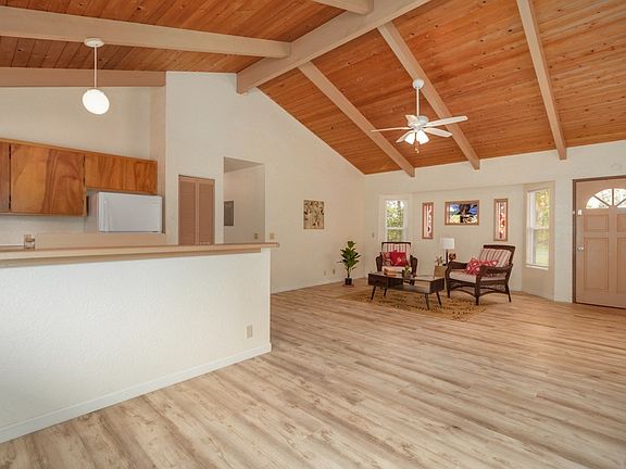 The front home is a spacious 3 bedroom, 2 bath, single story home with beautiful cedar vaulted ceiling in the living/dining rooms, LifeProof luxury vinyl throughout and stained-glass windows give it a unique character.