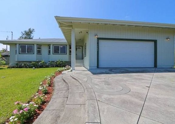 Spread out and enjoy the island life in style! As you walk through this fully renovated home, experience the ample family living area, oversized bedrooms, generous bathrooms, and storage space galore. Every room of this home has been upgraded with ceramic tile flooring and baseboards. The kitchen and both baths have new cabinetry, with soft close, dovetailed drawers, new sinks and fixtures, all topped with gleaming new granite countertops. The guest bath has a new tile surround and the master shower is a veritable retreat with newly installed tile and accents. The kitchen boasts all new stainless steel appliances and a new garbage disposal. The front entry door, as well as the rear slider and master French doors are all new. Other new additions include ceiling fans and smoke detectors in each room, lighting fixtures throughout, closet shelving and rods, a laundry sink, and a fresh coat of paint in the interior and the garage. A new 80 gallon water heater and recently serviced catchment system provide plenty of water for all your needs. The property has been nicely landscaped with the addition of many new plants. The driveway and rear lanai are custom designed concrete that capture the spirit of the island. Come see all that this home has to offer and make sure to check out the view of Mauna Kea from the master bedroom and rear lanai.