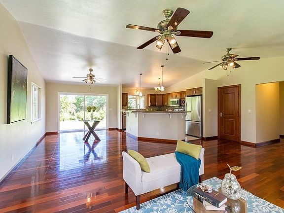 Find yourself at home in this beautifully renovated house in desirable Hawaiian Paradise Park! You'll find this home situated on a quiet street on the dead end side of Kaloli where there is little traffic. Be invited into the large open living space, perfect for entertaining or family living. Appreciate the million dollar finishes this home boasts at a fraction of the price. Real hardwood floors and doors, high end cabinets, quartz counter tops, a dramatic stainless steel farmhouse sink, and top of the line fixtures that will be enjoyed for years to come. The spacious bedrooms will give you plenty of room to stretch your legs, and the thoughtful layout of the home offers ample privacy to all its residents.You have to come see this like new home with custom finishes and mature landscaping to truly appreciate it!