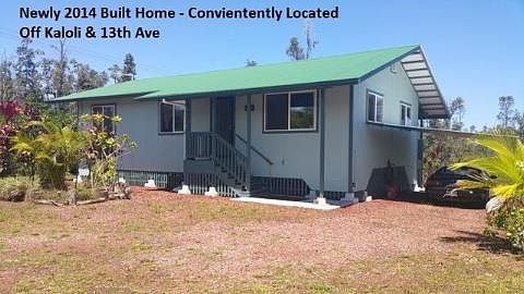 Newer Built 2014 Quality 3 bedroom, 2 bath home on one acre conveniently located on the corner of Kaloli and 13th Avenue. This quality home offers vaulted ceilings in the kitchen and living room, custom cabinetry with beautiful swirling colors in the kitchen and both bathrooms, and lovely bullnose corners to give a peaceful and smooth look. Home is easy to keep clean with ceramic tile flooring throughout. Plus, a detached 10x12 approximate storage facility with carport or lanai, and three overhead parking spaces. Landscaped garden with various palms, kukui nut tree, tea leaves and few fruit trees: banana, papaya, etc. Back of the acre is untouched with beautiful Ohia. Wonderful greenery along the roadside parameters. Convenient location with a short drive to Hilo, Keaau or Pahoa! Paved roads up to the driveway. Pictures are not current due to current occupancy. Please do not go to this house until the March 11th because there is still a tenant in there. -Special Opportunity for Veterans using the VA Home Loan: Option to assume my loan with interest rate 3.25% with negotiation. 15-1535 13th St, Keaau, HI 96749 TMK 3-1-5-47-131 Owner is responsible for: --Electric- -Appliance replacement or repair- -Catchment/water re-fill service- -Termite tenting services-- Tenant is responsible for: --Propane/gas utility (stove and water heater)- -lawn/yard maintenance (Negotiable)- -Internet service- -TV service- -Phone services- -Pest control other than termites-- One time pet deposit fee of 300$ per pet (not refundable & no fees for service animals) One time credit check fee of 30$ for all applicants. Last two bank statements required. Deposit of 1 months rent required. Proof of income required. Price is negotiable for both rent or rent-to-own/lease agreements.