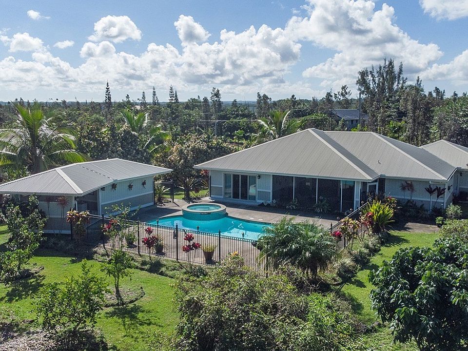 Beautiful home on 1st Avenue, close to ocean, in Hawaiian Paradise Park. Over 2000 sq ft with 3 bedrooms, 3 full baths and a home office. In ground salt water heated pool and spa with a permitted pool cabana with surround sound system and full bath. Fully owned photovoltaic system, with 25 panels and net-metering. Home is fully fenced and gated with mature fruit trees. Furnishings negotiable.