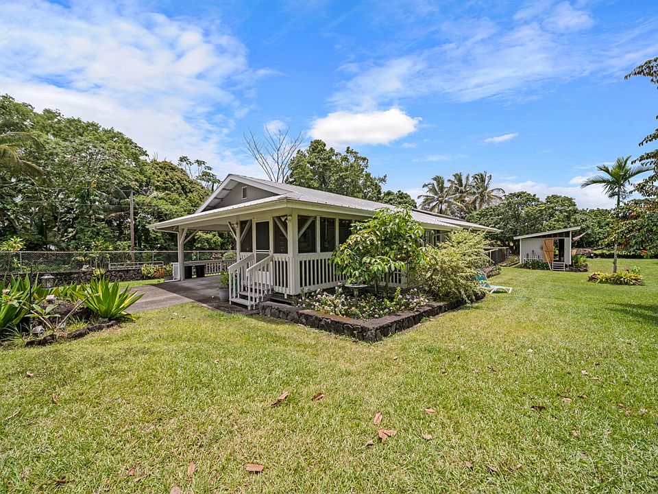 This Beautiful 2 bed 2 Bathroom  home tucked back in the well established Hawaiian Paradise Park Estates.This home has so much to boast about !! From the stunning landscaping to the cozy in home feel with a screened in Lanai to enjoy relaxing and entertaining.Newly renovated floors to bathrooms and all new appliances. With a cute fully equipped guest suite located behind the main house.This fully fenced acre has mature fruit producing trees From mango to pineapple , Coconut and much more! Enjoy sitting by fire pit at night while watching a beautiful staring night sky!!!