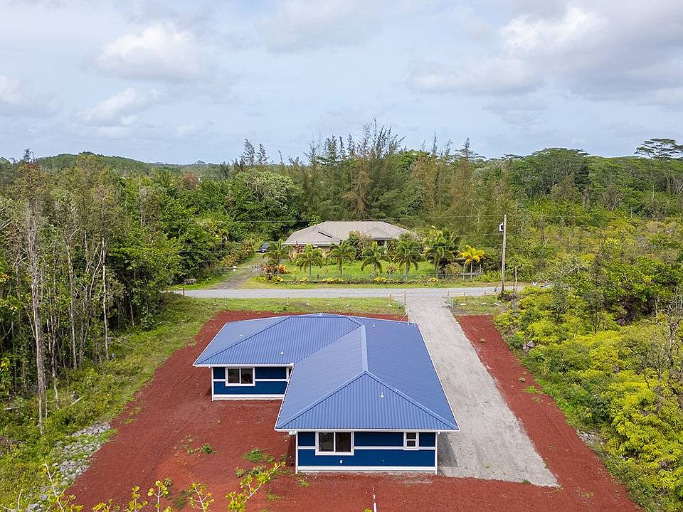 BRAND NEW 4 bedroom home on a FULL ACRE of land in the popular and rapidly growing Hawaiian Paradise Park subdivision just on the outskirts of Hilo proper. Bright and spacious open vaulted ceiling open living space. The Kitchen has solid surface countertops with modern hardware & fixtures, ample cabinets space, stainless steel appliances. Split floor plan with Primary bedroom on left wing with walk in close, ensuite bathroom with walk in shower. On the right wing has the 2 bedrooms, guest bathroom with tile bath. There is a 2 car garage between the main home and study with full bathroom, and kitchenette with its own entry.