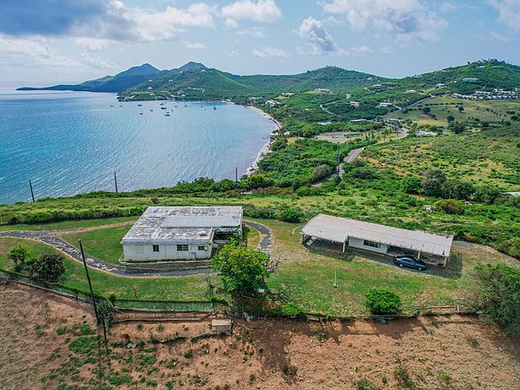 ONE OF A KIND PROPERTY! This knoll top home and cottage is situated on almost 13 acres of prime east end land. It overlooks Buck Island, the Caribbean Sea and Teague Bay! The R-3 zoning allows for high density development to build a condo community, resort or a large, private retreat with multiple structures. This is an ideal location with high demand from condo buyers and vacationers alike, right across from the beautiful beach and minutes to the St. Croix Yacht Club. The main house is a four bedroom, two bathroom home with a living room, kitchen and a large outdoor living area between the bedrooms and main living area. The large covered, open-air living area offers incredible breezes and is the perfect example of alfresco living with incredible views. The detached cottage has two-bedrooms and one bathroom with a small kitchen area, two carports and stunning views from the knoll top! Strong bones and some concrete roofs on the main house, now just come bring these homes back to life and make them your own!