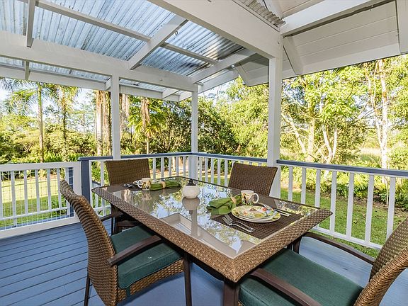 The perfect place to share space! Two living area joined by a large central lanai may be the perfect solution to multi-generational living, frequent guests or additional income. The main dwelling has 1 bedroom downstairs and a beautiful sleeping loft upstairs. The refreshed galley kitchen has popular white shaker style cabinets with tiled back-splash, glass front cabinets, tons of storage, breakfast bar and great counter space. Also on this level is a nice sized bedroom that enjoys direct access to the rear lanai, nice great room and bathroom with over-sized shower. Cedar T&G ceilings soar high enough thru-out the home to accommodate a nice sized sleeping loft on one end. Just across the central lanai, a smaller version of the main home has been completely re-done with solid wood cabinets, nice breakfast bar with Ohia post accents, tiled back splash and nice appliances. Also on this level is a bedroom with full bath, an office nook and a bedroom that opens to the rear lanai. There's also a circular staircase leading to a smaller loft. Located on a paved road, the home sits back from the street and enjoys good privacy. Besides the central lanai, both structures have front and rear lanai areas. The laundry is located on the front lanai of the main unit and is easily accessible to both. Mature and producing fruit trees include Lychee, mango, citrus, dragonfruit, papaya and white pineapple. In a world of HO-HUM, this interesting home with almost 1600sf of living space and a ton of outdoor living spaces, offers a beautiful option for those who prefer to think outside the box!