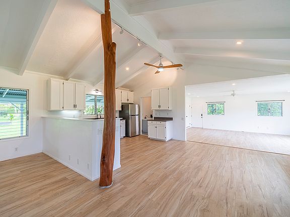 Your tropical oasis in Hawaiian Paradise Park! This updated 3 bedroom, 2 bath home on 13th Avenue boasts over 1800 square feet of comfortable living space on a fully fenced one-acre lot, offering both privacy and tranquility. The property is fronted by a striking rock wall, adding to its curb appeal and charm.<br>Step inside to find a modern open floor plan with vaulted ceilings, providing a bright and airy atmosphere throughout the home. The newly installed vinyl plank flooring throughout the home adds a touch of elegance and durability, while the solid surface countertops in the kitchen enhance the home's contemporary feel. The kitchen is designed for both functionality and style, perfect for preparing meals and entertaining guests. Both bathrooms were recently updated also.<br>The spacious back covered lanai is ideal for outdoor dining or simply relaxing and enjoying the lush surroundings. A bonus family room provides additional space for gatherings or hobbies catering to your diverse needs.<br>Outside, the property is a gardener's paradise with an impressive array of exotic fruits and plants. Enjoy the bounty of different varieties of Coconut, Lychee, Mango, Mangosteen, Hawaiian papaya, Malaysian papaya, Thai papaya, longan, Star fruit, Rollina, Soursop, Star apple, Pomelo, Jackfruit, Cempedak, White Sapote, Lemondrop mangosteen, Mountain apple and so much more. Ask for the complete list!!! This abundance of tropical fruits and spices ensures that your garden will be both beautiful and productive year-round. You will love that the property is fully cleared with an established lawn with a concrete pad for options<br>With its combination of modern updates, expansive living space, and a plethora of exotic fruits and plants, this home is a rare find in Hawaiian Paradise Park. Don't miss the opportunity to make this tropical haven your own!<br><br>** Please take a look at the property video *