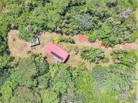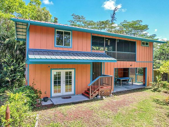 Charming mecca nestled in Hawaiian Paradise Park. Up and coming area anchored by the new Puna Kai Shopping Center and the very popular Maku'u Market. This tight clean bungalow features and open floor plan with 2 bedrooms upstairs and 1 bathroom downstairs. Perfect for artists and outdoor enthusiasts who enjoy nature in a peaceful landscape with strawberry guava, mango, ulu, lemon, lilikoi, lychee, and avocado on this hand cleared lot. The rich soil and climate allow for possibilities galore. Enter through a privacy gate, see the unique house built in 2015 which is totally off the grid and self sufficient with 8 PV panels, State of the art PV inverter, new batteries, a new generator and battery pack, solar on demand water heater. The two bedrooms on the upper level are connected by a breezy screened living area. A lower level kitchen with a gas stove has lots of charm. The large outdoor roofed area can be used as an art studio, dining, work, or living area. A visually pleasing shed adds either storage space, living area, or a work zone. The synergy between the convenient location and the carefully maintained property for future growth creates a truly unique appeal.. Road maintenance is currently $396.00 per year and subject to change. There is a $300 transfer fee to the buyer. So many possibilities!
