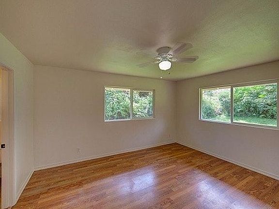 This is a Beautiful 4 Bedroom 2 Bath house with a circular driveway tucked back away from the road for extra privacy. This home boasts granite counter tops hard wood floors throughout Enjoy the spacious vaulted ceilings and mirrored closet doors for a feeling of openness. Master bath and huge walk in closet in the master bedroom. keep your vehicles out of the elements with this double car garage. Take a stroll in the back yard through the sliding glass doors. This is a perfect home for a family close to schools and parks. 1580 sq ft Eat-in kitchen with range and refrigerator Tenants are responsible for all utilities. 6 month to 1 year lease is required. call for more details. Mahalo. Tenants must pay their own utlities.