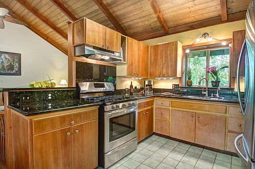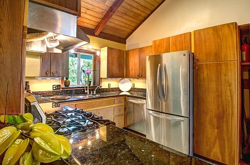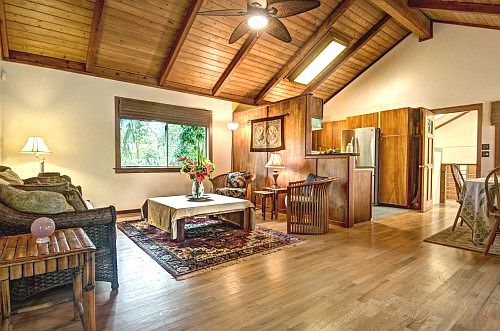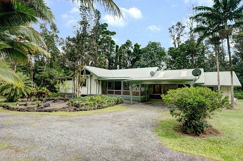 We welcome you to this meticulous custom home, with separate guest unit, located on paved road between Kaloli and Paradise. Well designed throughout, the large master suite joins a beautifully appointed bath with the jetted tub surrounded by windows to relax while enjoying the outdoor beauty that surrounds this property. Featuring gorgeous granite counter tops and new stainless steel appliances, the kitchen also has a skylight and greenhouse window for herbs and the like. The open floor plan blends the living and dining areas off the kitchen and all enjoy refinished hardwood flooring and ceramic tile. A beautiful Ohia and bamboo stairway takes you to a large multipurpose room with skylights used for a media room, yoga/exercise, den, dancing and gatherings for all seasons, trimmed out with Ohia. Ample storage throughout the home and newer front loading appliances are a plus. Sliding doors open to a second master suite, with separate entrances for use as a guest quarter, for parents, au pair, or caretaker quarters. This suite's bathroom has beautiful inlaid koi tiles and opens to a lovely outdoor shower in a Zen Garden setting. Set apart is the charming, fully permitted Guest House which has a separate electric meter, a full kitchen, living room, bedroom, bath, screened lanai and washer and dryer. Two catchments systems are equipped with UV filtration and designed to replenish each other. There is solar hot water heating too. The grounds are complete with mature landscaping, a variety of fruits, flowers and a water feature to enhance the natural beauty. A manicured lawn is perfect for entertaining and outdoor fun PLUS the outdoor hot tub is perfect for star gazing while you rejuvenate. Raised organic garden beds are ready for planting your favorite veggies too. Truly a special property that has been meticulously maintained is is ready and waiting for you. For info and pics sent instantly to your mobile device Text "151660" to 79564.