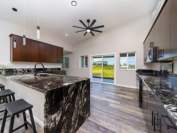 ** Modern Elegance in Hawaiian Paradise Park. Come check out this unique, contemporary designed new home. This one of a kind structure offers 4 bedrooms and 3 full baths. With an oversized kitchen, you have lots of counter space for all the entertaining you'll do. Separate studio suite with its own entrance is great for extended family or visiting guests. Cleared acre with room for a pool. Endless water provided by a well. This is the home you've been waiting for...