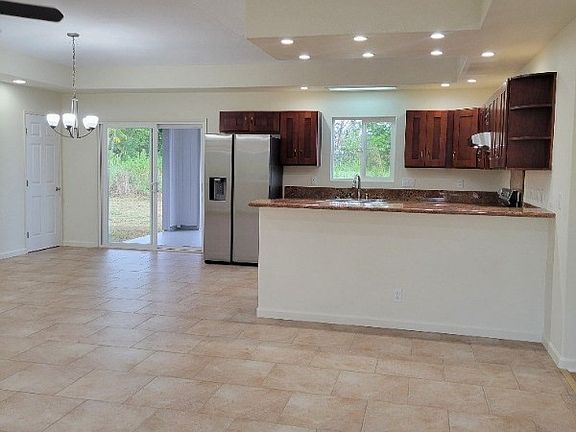 PRICE IMPROVEMENT!! Newly renovated custom home with 1,660 sqft living area in the much sought-after sunbelt of Hawaiian Paradise Park. This open-concept 3 bedroom 3 bath home boasts vaulted ceilings, recessed lighting, and ceiling fans for those tropical days and a large covered lanai off the kitchen and dining area for evening relaxing or entertaining.