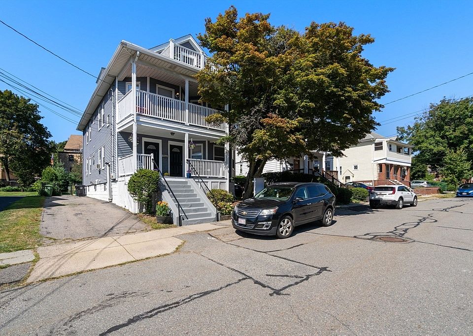 An amazing 13 room, 5 bed, 3 bath multi-family home with an oversized lot, perfectly located in desirable east Watertown. The first floor is a bright 2 bed, 1 bath unit with hardwood floors, extra-large pantry, front and back porches, separate driveway and storage in basement. The renovated upper unit has a total of 3 bedrooms and 2 full baths spread over 2 levels. Level 1 of the top unit has a formal living room, bright front sitting room, dining room, updated kitchen, 2 bedrooms, full bath, and laundry. The top floor has a large primary suite with full bath (jacuzzi tub and tiled shower stall), 2 decks, and space for an office. This house contains a unique combination of location, condition, parking (2 driveways), and lot size (7,630 sq ft lot). Additional features include a young roof, paver patio, and storage shed. Steps to the new net zero Hosmer School, public transit, Coolidge Sq. Minutes to Arsenal Yards, Charles River, Cambridge, and Boston.