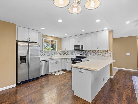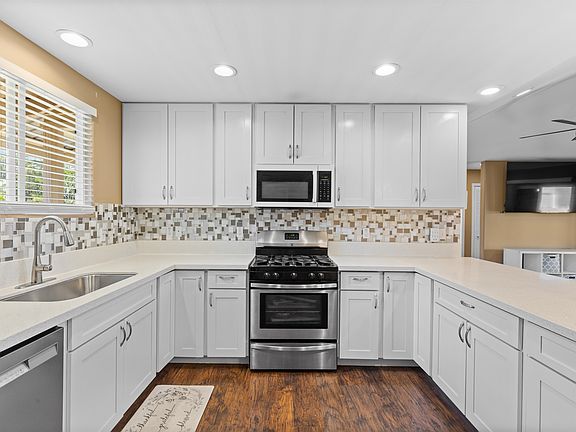 Fully fenced yardCovered lanaiAttached two-car garageWhite quartz countertopsIndoor laundry roomSplit floor planVaulted ceilings