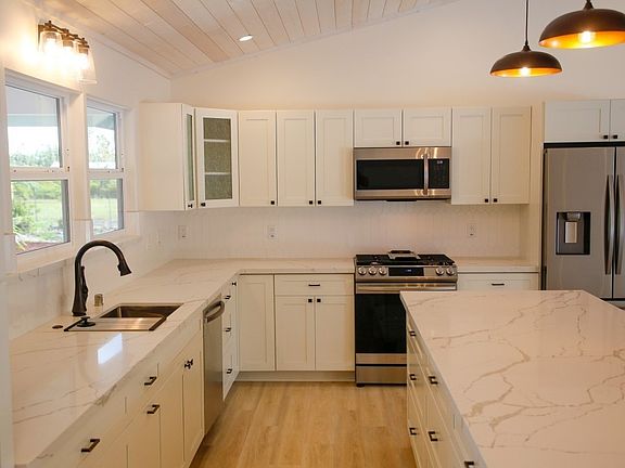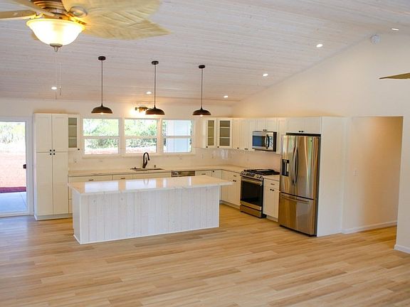 At last! The home of YOUR dreams has been waiting for you. Located in the highly sought-after coastal community of Hawaiian Paradise Park. This is one that you do not want to miss. Look no further. This designer’s 3 bedroom, 2 ½ bathroom bungalow home has over almost 1700sqft of living space. When you arrive to this lovely home, take note of the curb appeal fresh, clean and NEW. Inside, prepare to be IMPRESSED by the spaciousness, white washed T&G vaulted ceiling, and all of the upgrades. Brand new everything, and a contractor’s 1 year warranty to boot! With its insulated exterior walls and ceilings, this home was also designed for airflow and is ambiently cooled. The kitchen has plenty of storage and countertop space, barstool seating options, and stainless-steel appliances. The hardwood shaker cabinets are complimented by soft close doors and drawers, and quartz counters. The conveniently located laundry room with stainless steel washer, dryer and large sink sits next to the massive 2-car garage and an additional half bathroom. The primary bedroom suite, with its coffered ceiling and private sliding glass door is perfect with an ensuite bathroom featuring a double sink set and a beautifully porcelain tiled stand-up shower, and a HUGE walk-in closet. Two more generously sized bedrooms can be found that can share an additional full bathroom. Head back to the living room and out onto the giant lanai. Set up your furniture and fireplace and experience the best of outdoor living. This is the perfect place for entertaining, looking into the backyard of this home nestled on 1-acre piece, which could be all yours. Take advantage of a coastal community lifestyle. Hikes, tidepools, beaches, fishing, yoga, and bike riding a plenty. An easy commute to down town Pahoa, Keaau, or Hilo. You will find plenty of shopping, dining, boutique shops, big box stores and events! What more could you ask for? Schedule a showing today!