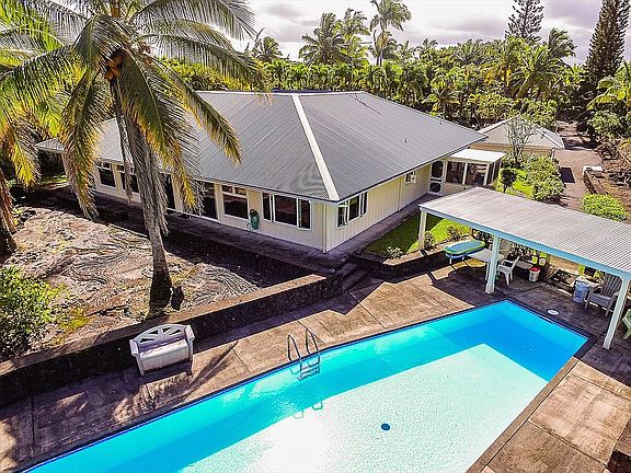 Resort quality home will make your heart sing! Gated and completely developed, this home features an in-ground pool, spa, water well, whole-house generator, fencing and beautiful living spaces. Enter the home thru double custom "Maile" styled doors to a grand entry hall with an impressive center atrium that help flood the home with nature light. With 3000 sf of living space, the home has bedrooms tucked away on one portion of the home while the great room and master span the makai (ocean) side of the home. Both the master and great room feature open beamed ceilings and take full advantage of the constant trades that originate off the blue Pacific just a few streets away. The large galley style kitchen with 2 sinks is wide enough to accommodate multiple chefs. It's an entertainer's delight. A sweet screened lanai just off the breakfast area is the perfect spot for morning coffee. During the day, the pool area is the place to be while at night, the spa located adjacent to the breakfast area and pool, will become your special sanctuary. The master retreat has experienced recent upgrades including stylish travertine, glass block shower and double vanity. Also centered around the center atrium, two additional bedrooms are both nicely sized and have easy access to a full bath. The office area has nice built-ins and large picture window. This space could easily be converted to a 4th bedroom but the current open styling allows the owner to constantly enjoy nature's treasures. The entire property is designed for EZ care so allowing the owner to fully enjoy the property without the hassle of intense maintenance. It's a home that is truly more than a house, it's an experience