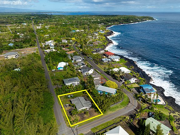 This 1,192 Sqft home features high vaulted ceilings in the main living area, creating an open and airy feel in this modest yet inviting 3-bedroom, 2-bathroom retreat with attached 440 sq ft two-car garage and 426 sq ft covered lanai and open patio for comfort and ease. Take this wonderful blank canvas and create the tropical sanctuary of your dreams. Located in the sunbelt of Hawai'i Paradise Park, this rare opportunity allows you to wake up to stunning sunrises, enjoy seasonal whale watching, and take in the natural beauty of hiking trails, fishing spots, and the serenity of being steps away from the Pacific ocean.
