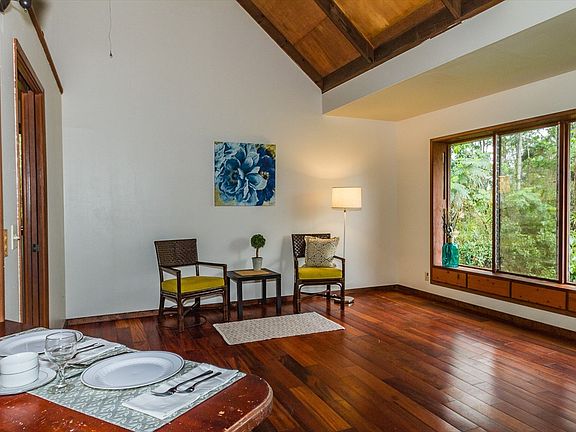 Conveniently located just a few lots off Paradise Dr. and 24th Ave., this completely custom home is sure to please the best of bargain hunters. With great features like soaring open beamed ceilings, Tigerwood hardwood floors throughout and two master suites it's a home not often found in this price range. Everything about this home is custom. From the moment you drive up and are greeted by the little wooden walkway that leads to the front door, it's clear this home has its own unique style. At the tiled entryway, you are welcomed by those soaring ceilings, hardwood floors and the view of the oversized windows and sliding glass door that leads to the rear wrap lanai. Just off the main living area is a very functional kitchen with tiled counters, upper open display shelves, and lower solid wood cabinetry. There's even a very creative custom cabinet for the rubbish and a custom wood breakfast bar ideal for a meal for two. Also located off main living area is a spacious study with tons of built-in shelving. Whether you have a home business, an extensive library, or a crafting fetish, there is plenty of room here! It could even be used as a third bedroom! Located at the opposite end of the home are the two master suites. Each room features open beamed ceilings, hardwood floors, and a bath. One bedroom offers access to the rear lanai while the other has built-in shelving. With recent upgrades like new exterior and interior paint, new roof (installed approx. 2015), termite tenting (April 2018) and new light fixtures it's just waiting for the new owner to come in and add their own touches. Spend the days relaxing on the spacious, covered rear lanai, perfecting the already established landscaping, or tinkering in separate garage/workshop. So much for such an affordable price tag!