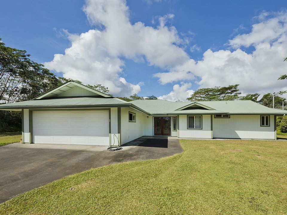 This 3BD/2.5BA 1,922sqft home built in 2008 on one acre of land in Hawaiian Paradise Park comes with a lot of outdoor extras, including an above-ground pond with a waterfall, stand alone hot tub, and a large concrete pad in the backyard that has a basketball hoop and an outdoor BBQ pit with sink and prep area.